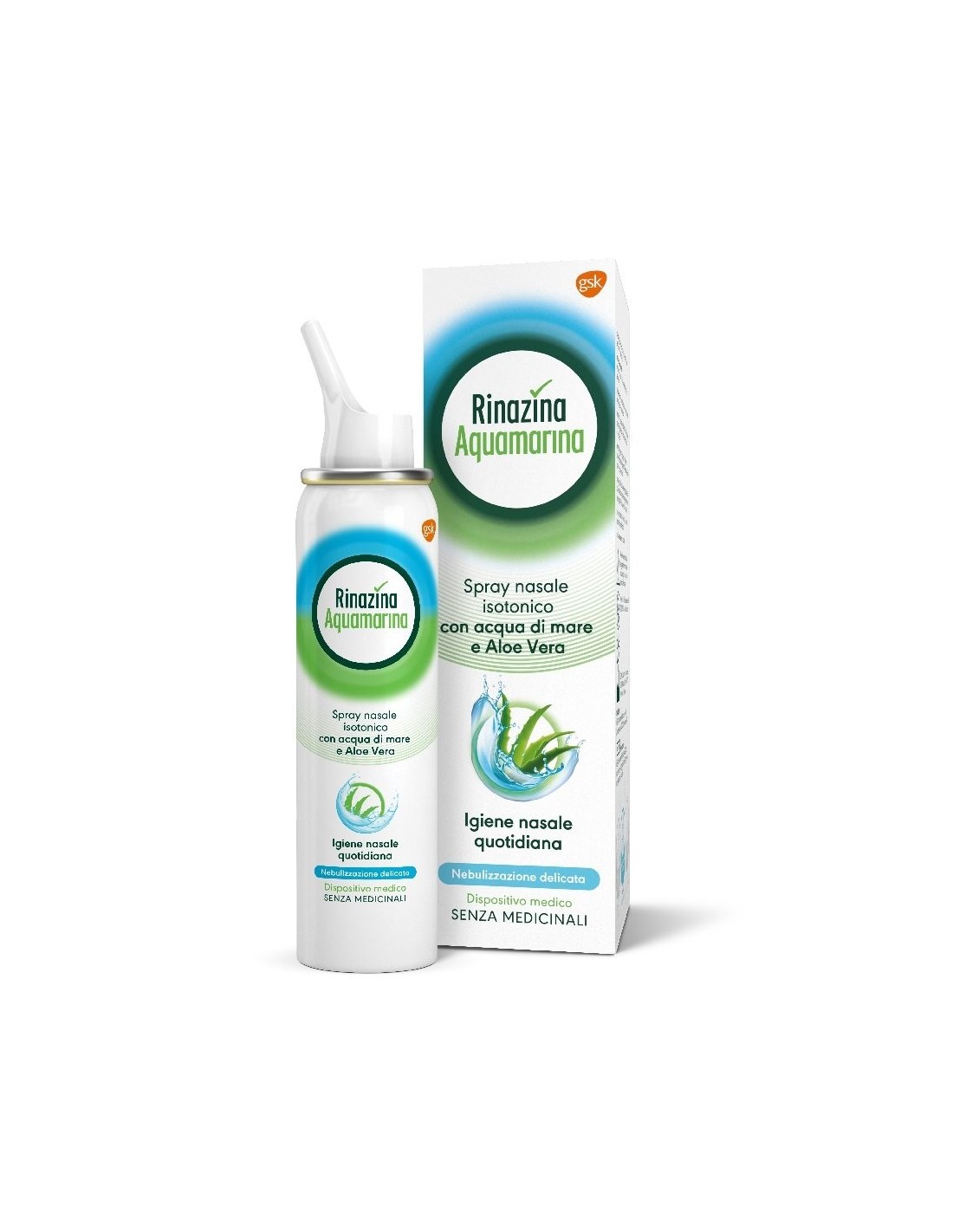 Rinazina Aquamarina Spray Nasale Isotonico Delicato Lavaggio Nasale Acqua di Mare e Aloe Vera 100 ml
