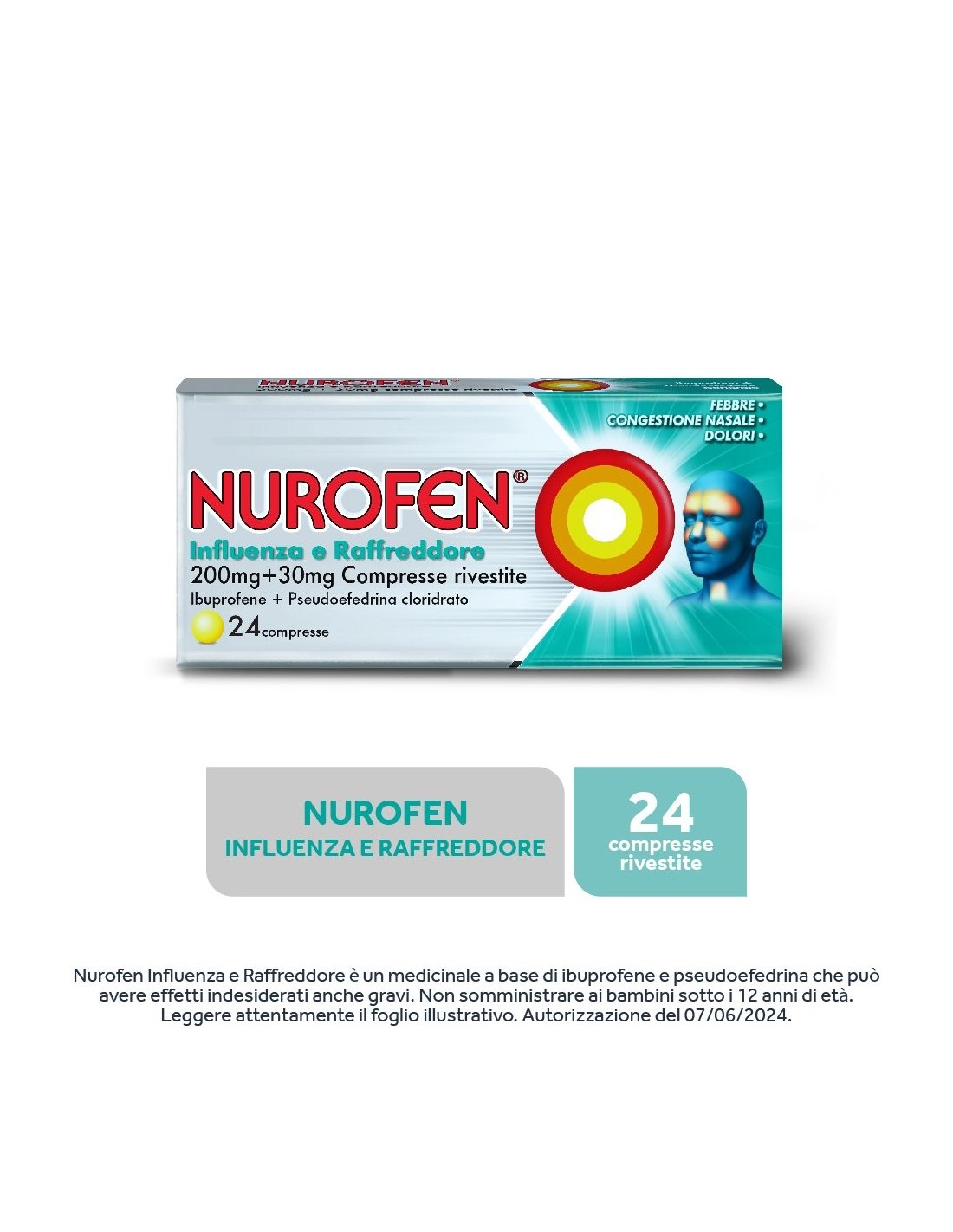 Nurofen Influenza e Raffreddore Contro Influenza Raffreddore e Mal di Testa 24 Compresse
