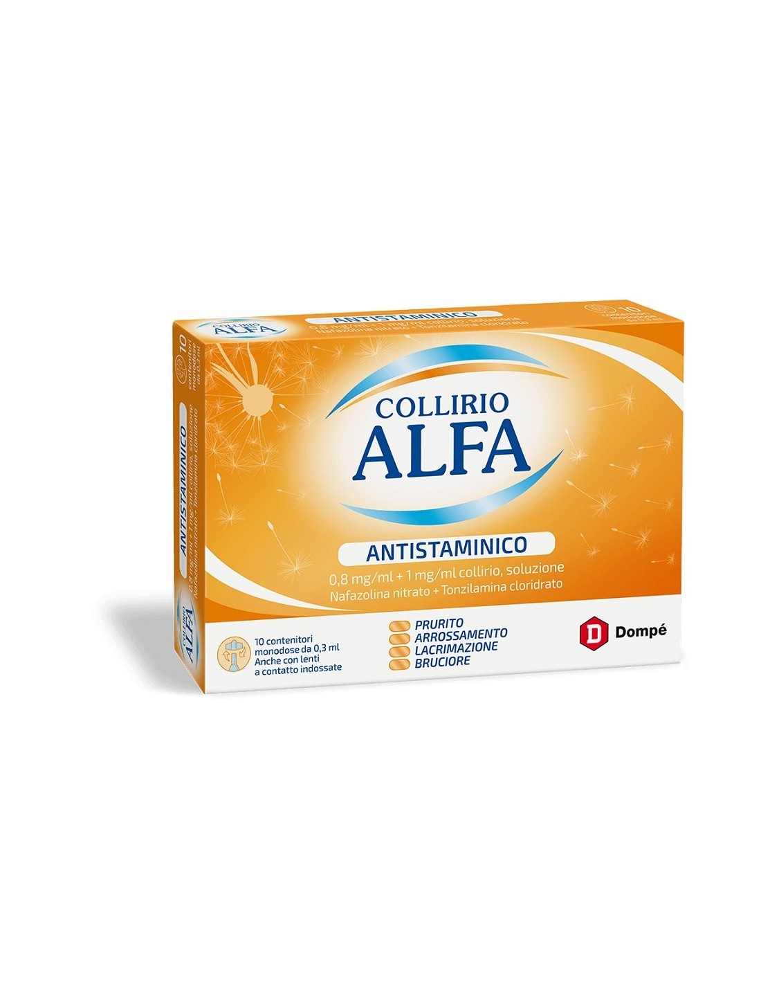 Confezione: 10 contenitori monodose; modalita duso: instillare 1-2 gocce in ciascun occhio, frequenza secondo indicazioni; conservazione: a temperatura ambiente, lontano da fonti di calore; data di scadenza chiaramente indicata su ogni contenitore; ingredientes principali: sostanze antistaminiche e stabilizzanti per garantire una pronta disponibilita. Non contiene sostanze che causano sonnolenza e puo essere utilizzato in attivita che richiedono attenzione.