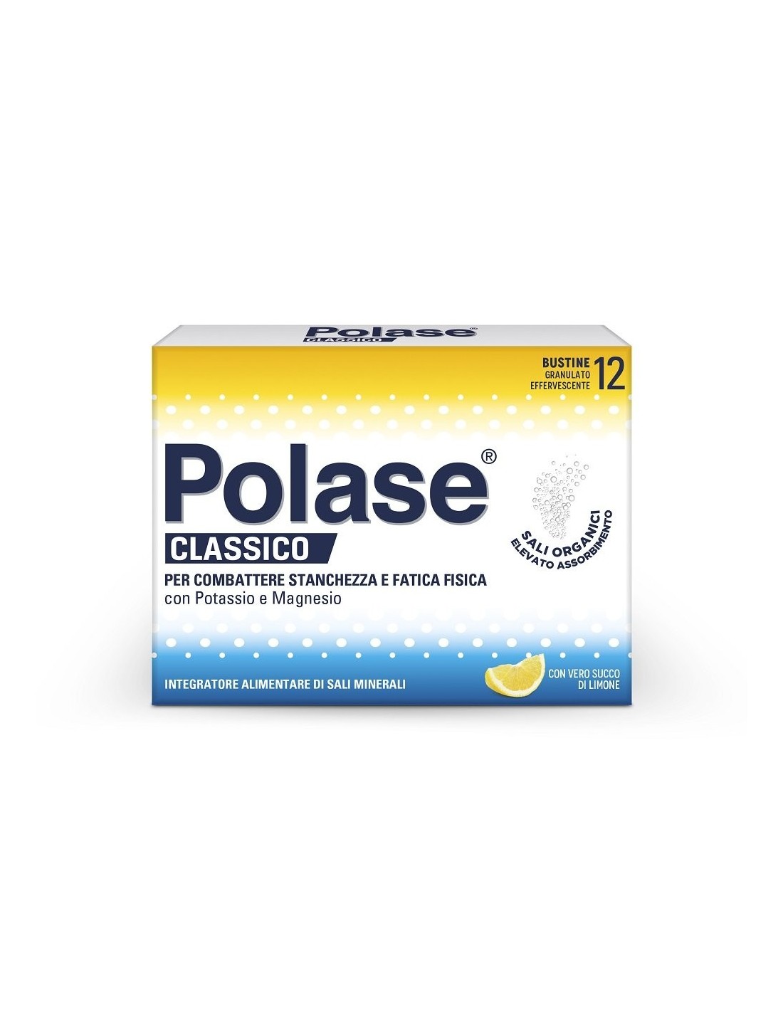 Polase Classico Magnesio e Potassio Integratore Alimentare Sali Minerali Gusto Limone 12 Bustine
